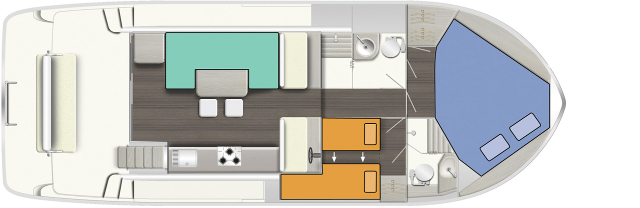 Ab 2017 wird neu das Boot SIXTO PRESTIGE C (4+2), 13.50m x 3.80 m, die Flotte der Nicols ergänzen. Es handelt sich um ein Boot der Klasse „Estivale“ und verfügt über 2 Schlafkabinen für je 2 Personen.